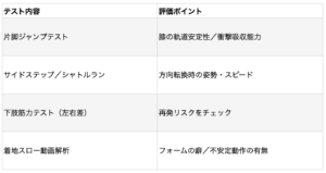 痛みが落ち着き、筋力や柔軟性も回復してきたタイミングで、復帰可能かどうかを判断するテストを実施します。
