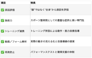 次章では、こうした対応をサモーナスポーツ整骨院ではどのように実践しているかを詳しくご紹介します。