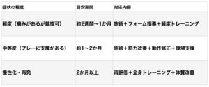 - 再発しない体づくり・競技復帰支援(再発予防期)